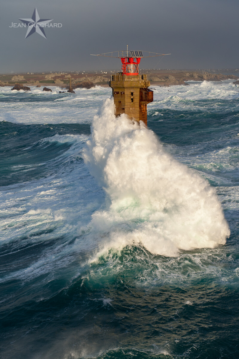 Le phare de Nividic durant le passage de la tempête Fionn