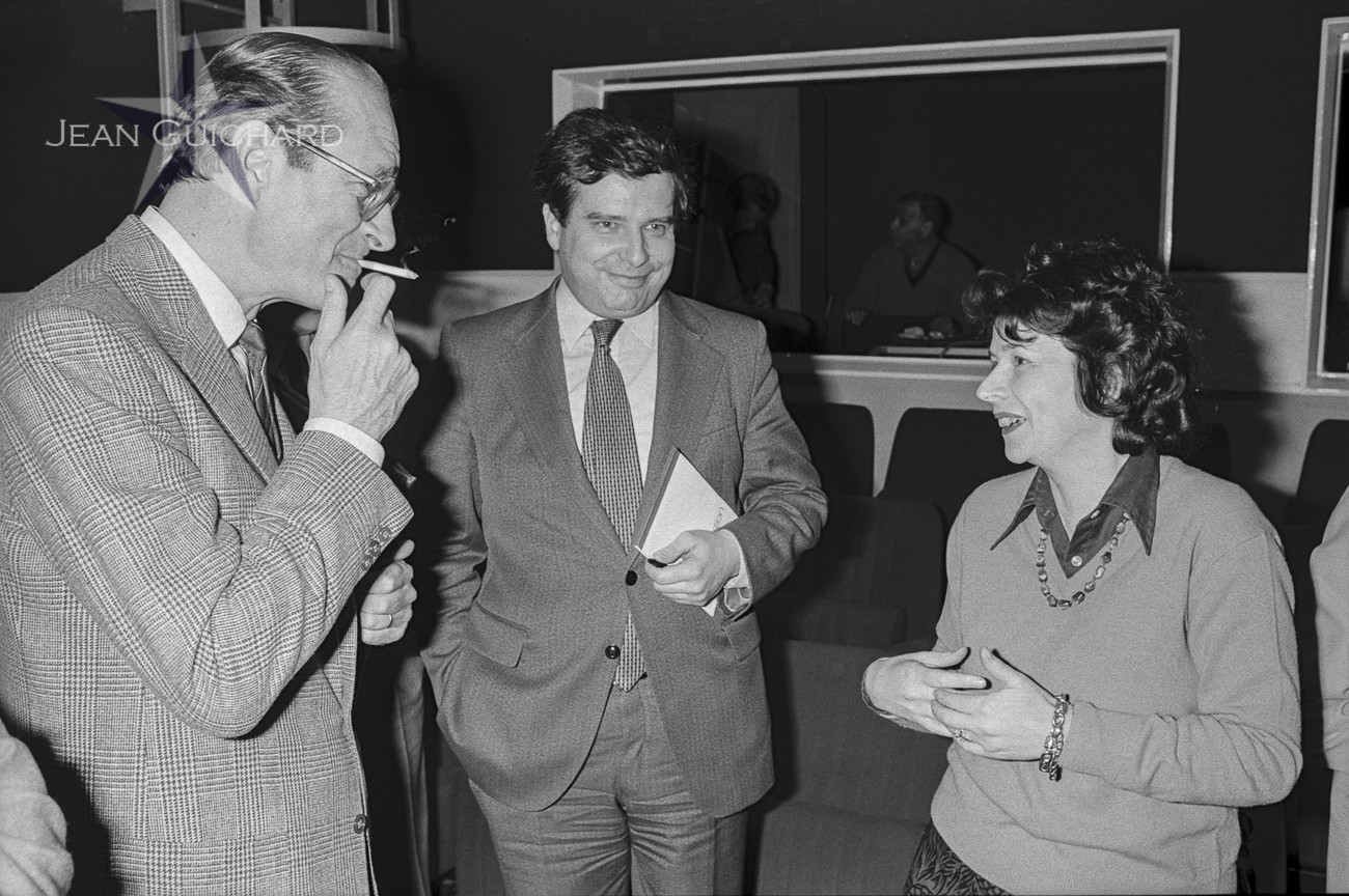 Jacques Chirac lors de l'émission de France Inter "Face au public" et Michèle Cotta Présidente de Radio France