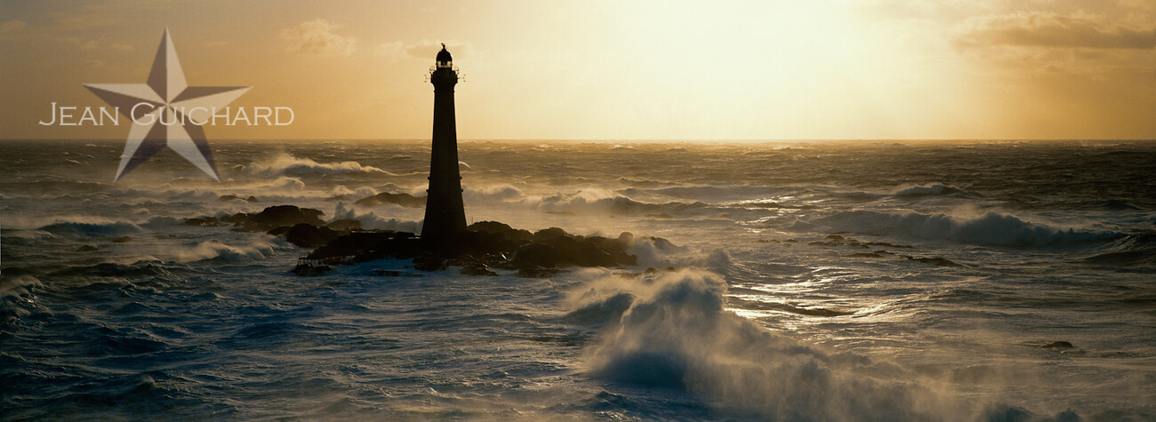 Lighthouse of Skerryvore during high wind. Situated 40 km west of Mull, South of the island of Tiree and the sea of Hebrides.