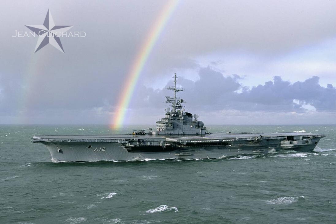 The former aircraft carrier Foch, renamed Sao Paulo while leaving Brest under Brazilian flag, during a storm in the sea of Iroise.