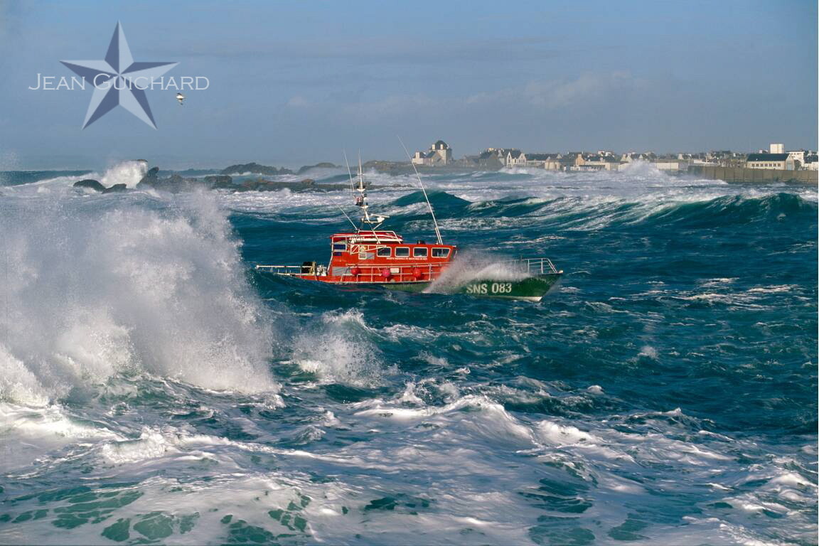 Patrol boat S.N.S.M. Prince d'Eckmühl at the end of the port of Saint-Guénolé.