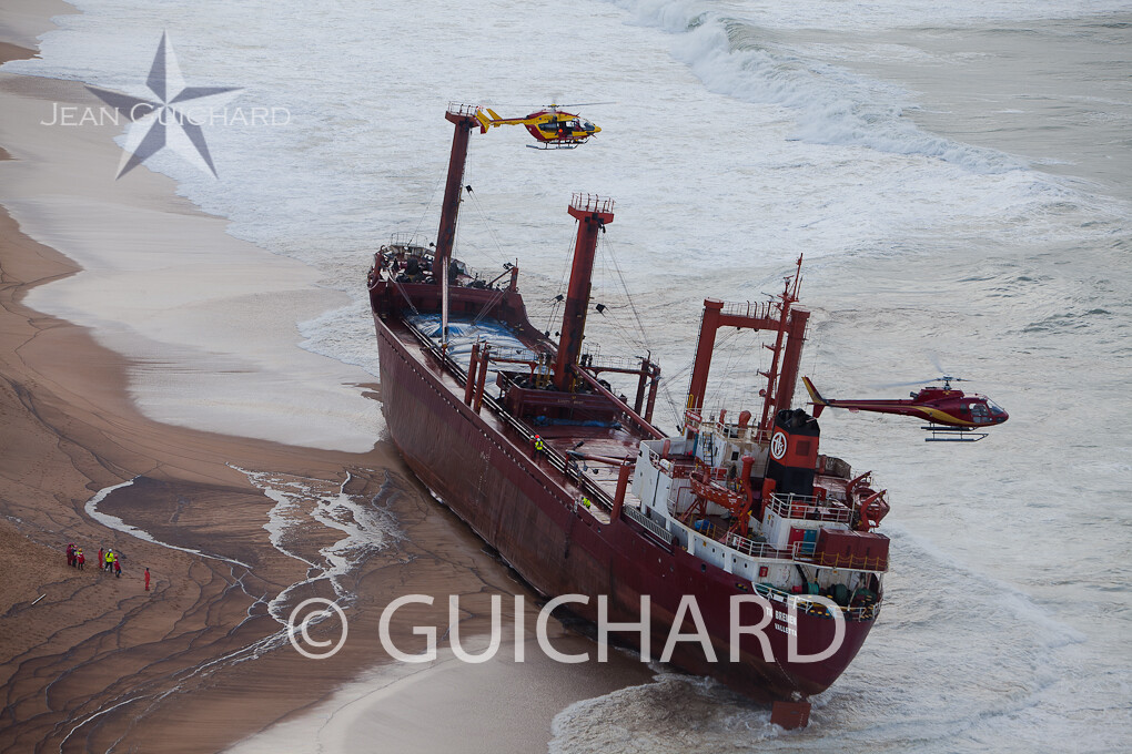 The boat TK Bremen shipwrecked on the Kermihiny beach at Erdeven, close from Etel.