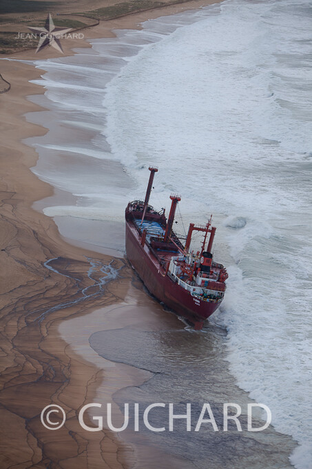 The boat TK Bremen shipwrecked on the Kermihiny beach at Erdeven, close from Etel.