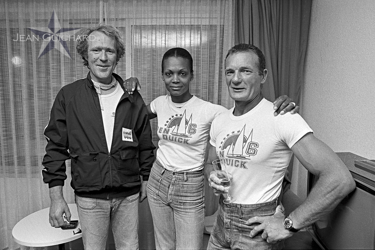 Jacqueline et Eric Tabarly et le vainqueur Eugène Riguidel.