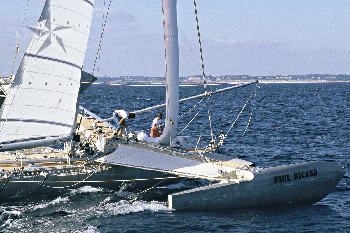 Arrivée de la transat Lorient-Bermudes-Lorient. Le nouveau spinnaker réparé ne change pas l'issu du match.