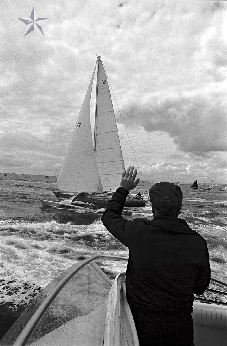 Eric Tabarly, blessé ne peut participer à la course, il cède sa place à son coéquipier Marc Pajot.