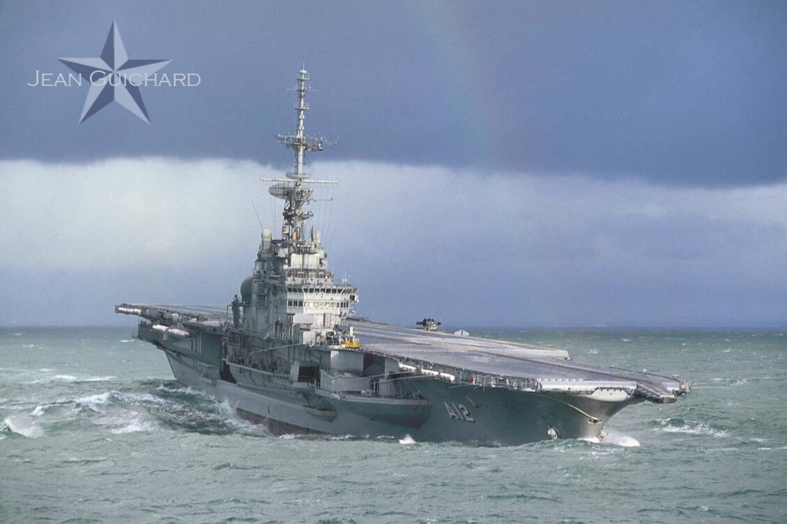 The former aircraft carrier Foch, renamed Sao Paulo while leaving Brest under Brazilian flag, during a storm in the sea of Iroise.