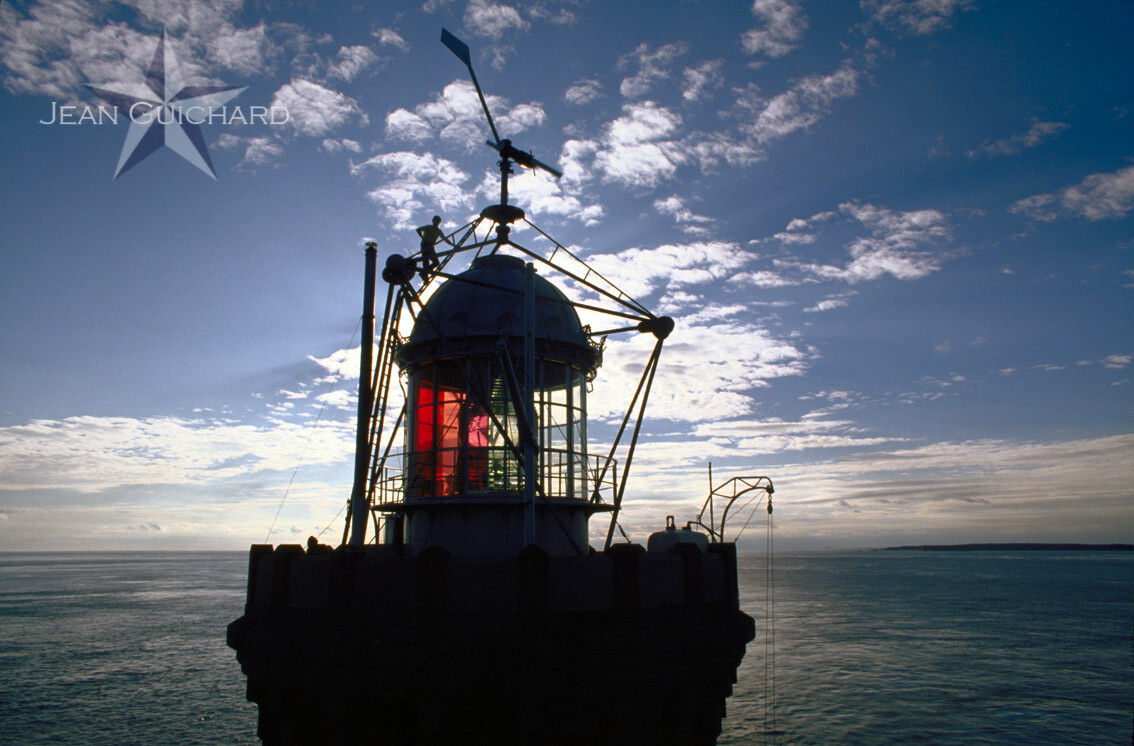 Lighthouse of Kéréon, the guard Paul Bodenan on the lantern of the lighthouse of Kéréon, situated near Ouessant, on the route of Fromveur.