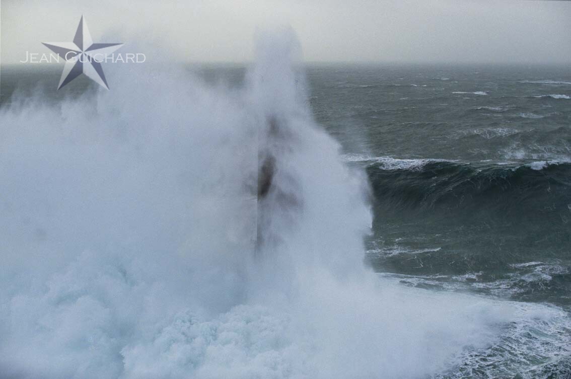 Lighthouse of Kéréon during a storm, route of Fromveur near the island of Ouessant.