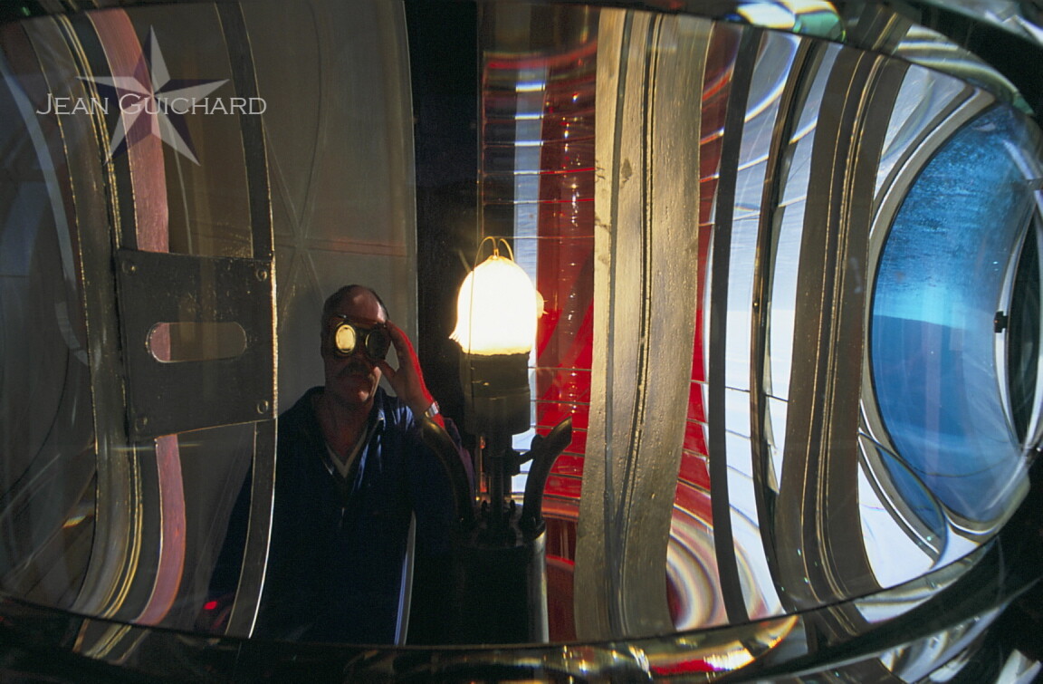 Lighthouse of La Vieille. The guard, Jean Donnard, supervises the combustion of the oil burner. This lighthouse was the last one that was equipped with an oil lantern in 1989; today it is electrified and automated. The lighthouse is situated off the Point du Raz.