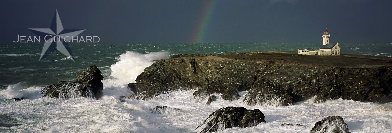 Lighthouse of Les Poulains during a storm.
