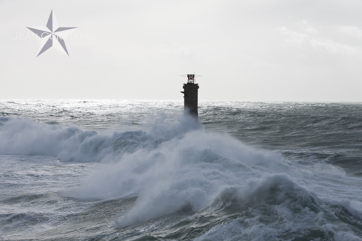 Lighthouse of La Nividic, situated in Iroise Sea, during the storm Qumeira