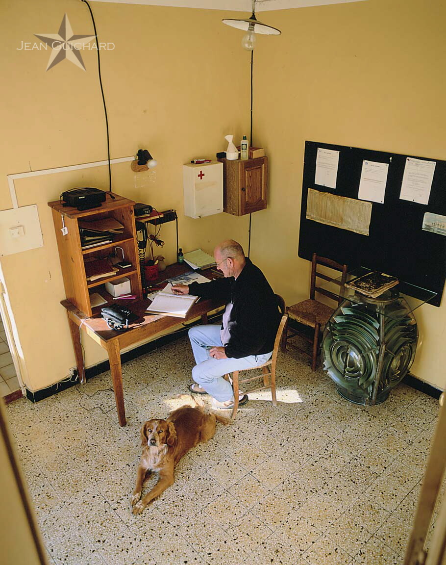 The lighthouse of Sénétose situated at the south of the Gulf of Valinco. The guard in the watch room.