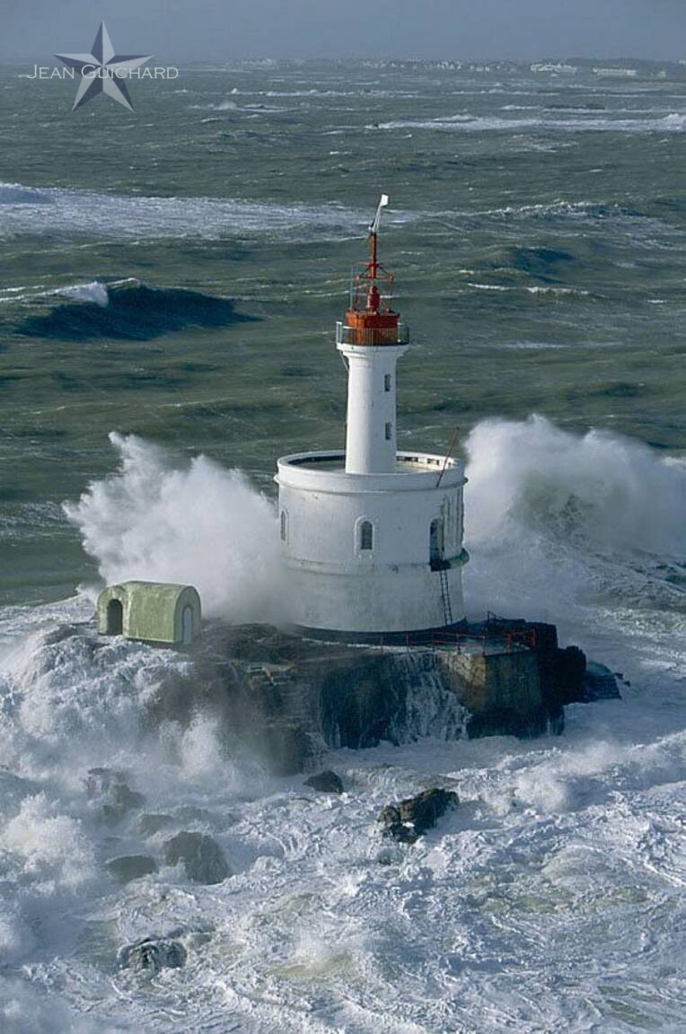 Lighthouse of La Teignouse during high wind. It is situated on the rock of La Teignouse, at the entry of the bay of Quiberon.