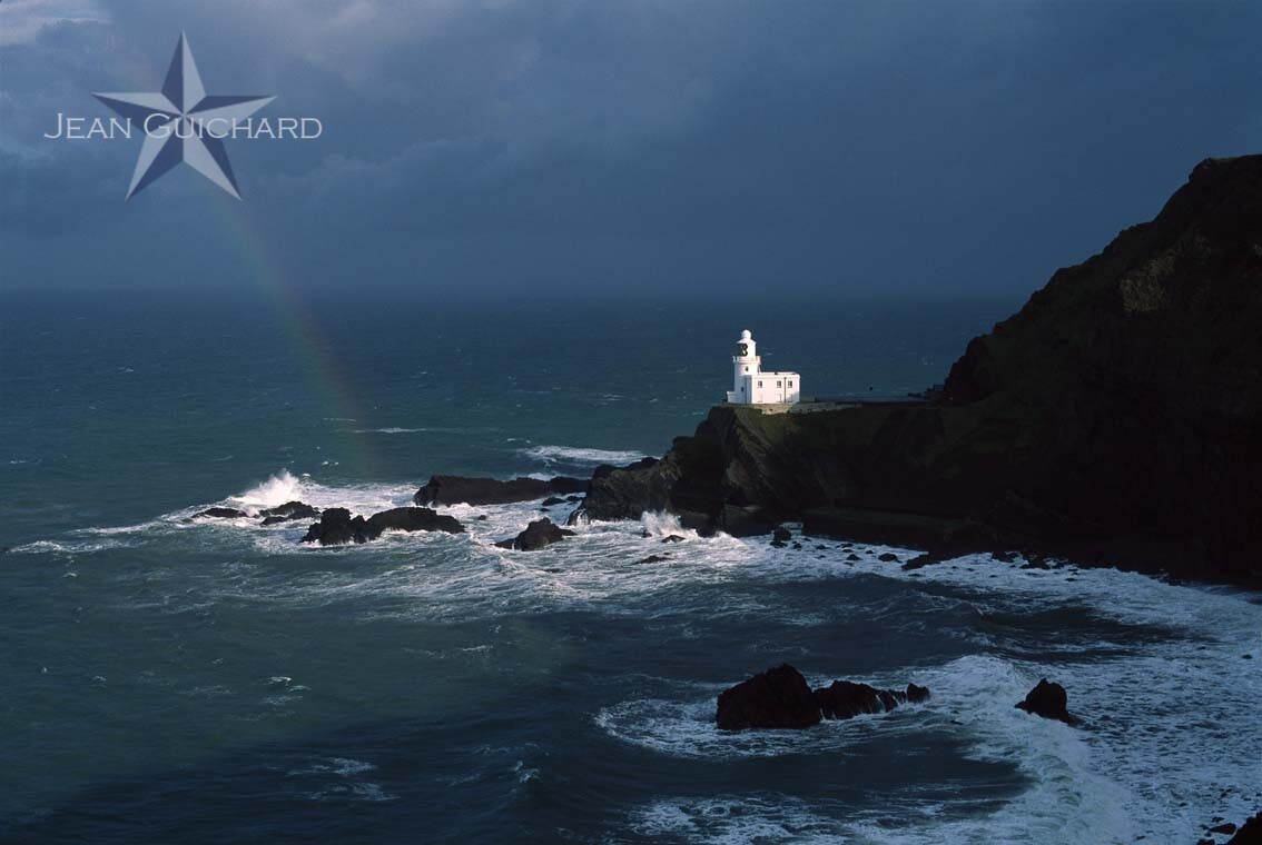 Lighthouse of Hartland Point situated on the southern point of the Barnstable's bay, in the North of Cornwall.