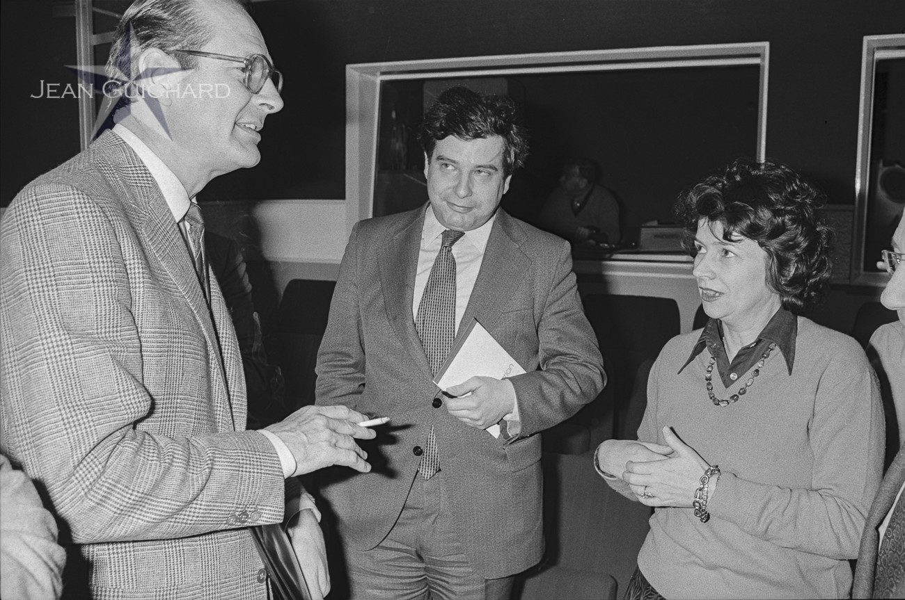 Jacques Chirac lors de l'émission de France Inter "Face au public" et Michèle Cotta Présidente de Radio France