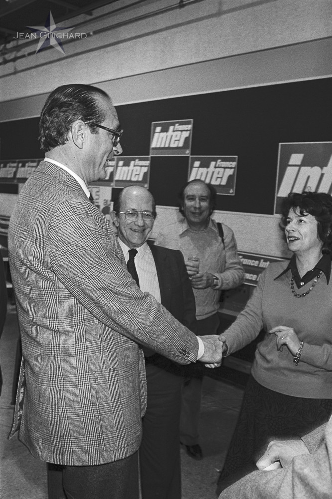 Jacques Chirac lors de l'émission de France Inter "Face au public" et Michèle Cotta Présidente de Radio France