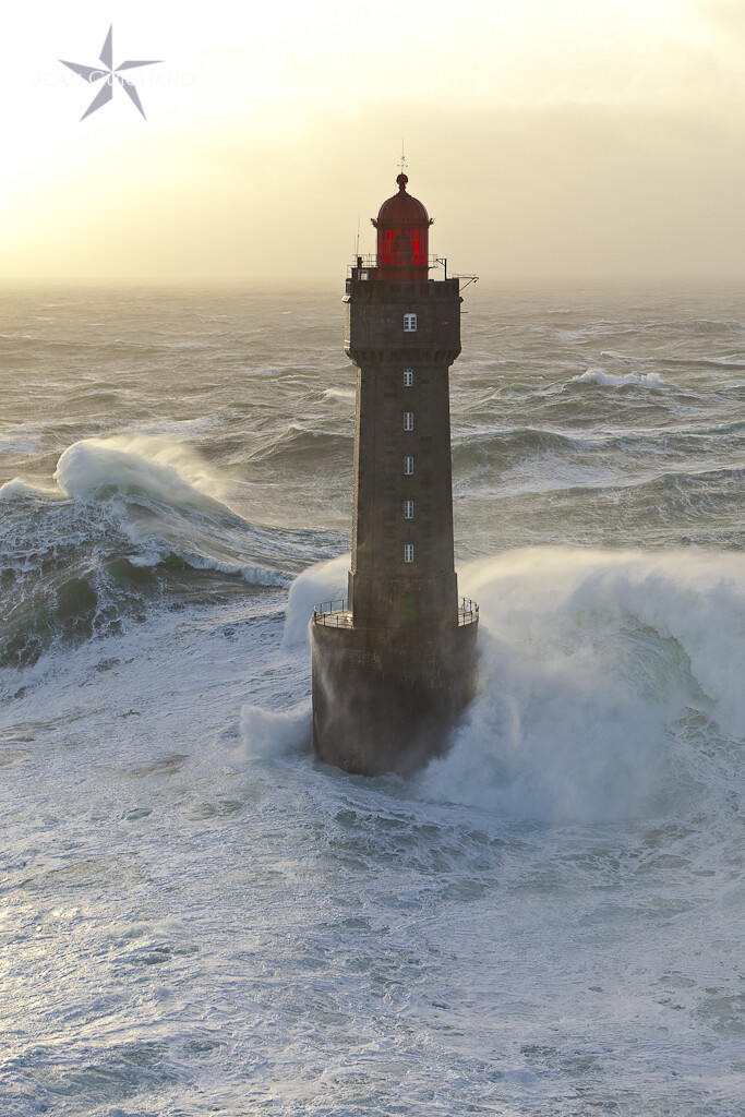 Phare de La Jument situé au large de l'île d'Ouessant en mer d'Iroise.