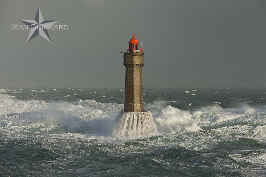 Phare de La Jument situé au large de l'île d'Ouessant en mer d'Iroise.