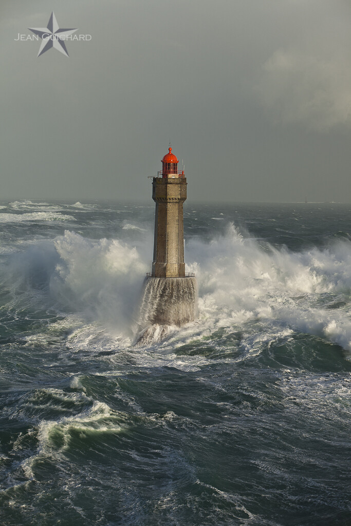 Phare de La Jument situé au large de l'île d'Ouessant en mer d'Iroise.