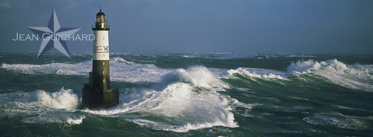 Le phare d'Armen, situé près de l'île de Sein, lors d'un coup de vent.