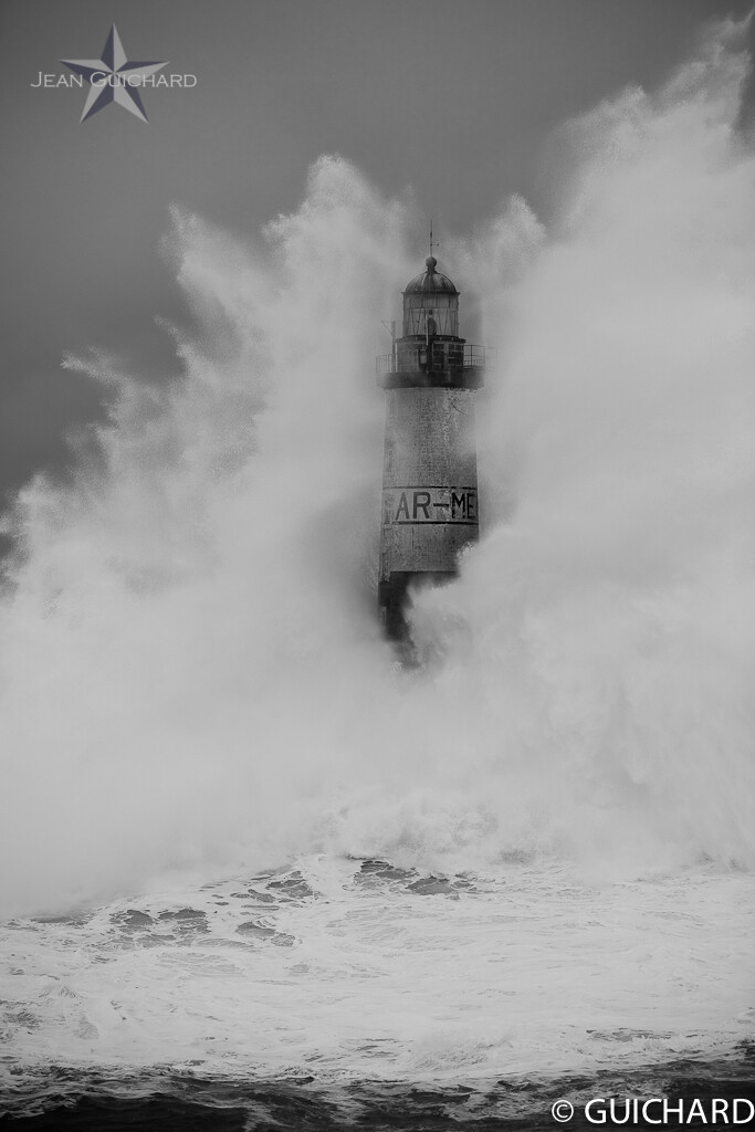 Le phare d'Armen pendant le passage de la tempête Joachim.