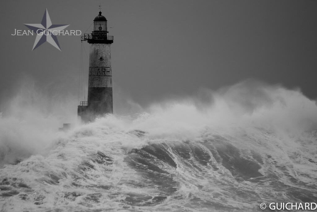 Le phare d'Armen pendant le passage de la tempête Joachim.
