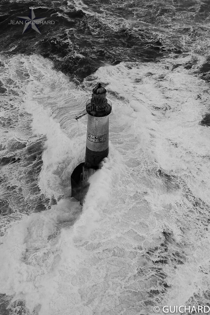 Le phare d'Armen pendant le passage de la tempête Joachim.