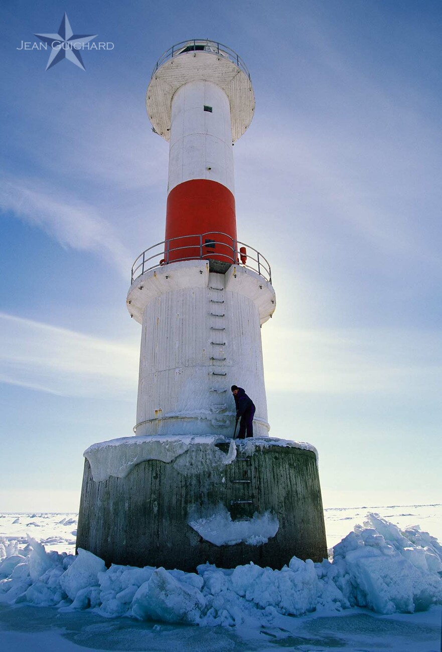 Un homme en charge de l'entretien dégage les accumulations de glace.