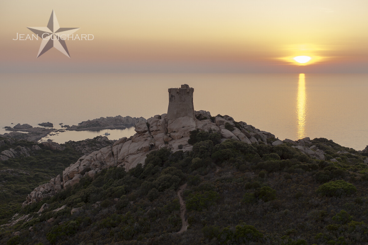 Tour Génoise au coucher du soleil au cap de Senétosa.